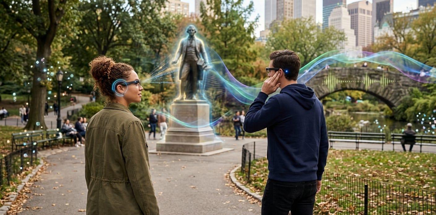 A museum visitor wears Meta glasses. As they move through galleries, the app recognizes artworks, installations, and architectural details, providing context that adapts to the visitor’s demonstrated interests. Linger in front of a Caravaggio and the system goes deeper into chiaroscuro technique. Walk quickly past the ceramics and it stays quiet. Ask a question and it responds conversationally. No audio guide menu, no QR codes, no numbered stops.